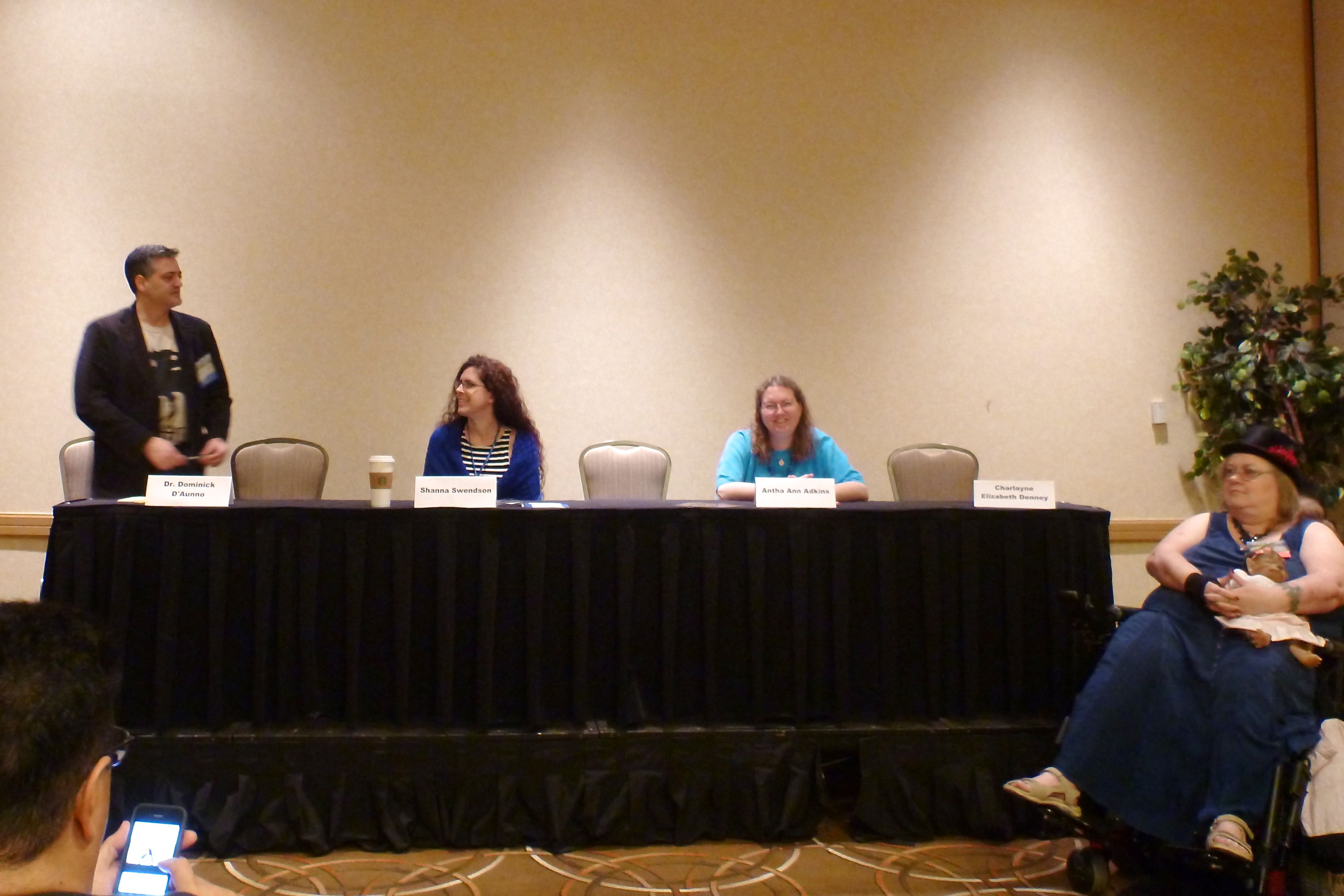 Moderating The Big Blue Box: Dr. Who with Diane Ullman (Queen Victoria), George Padgett, and Al Griego.