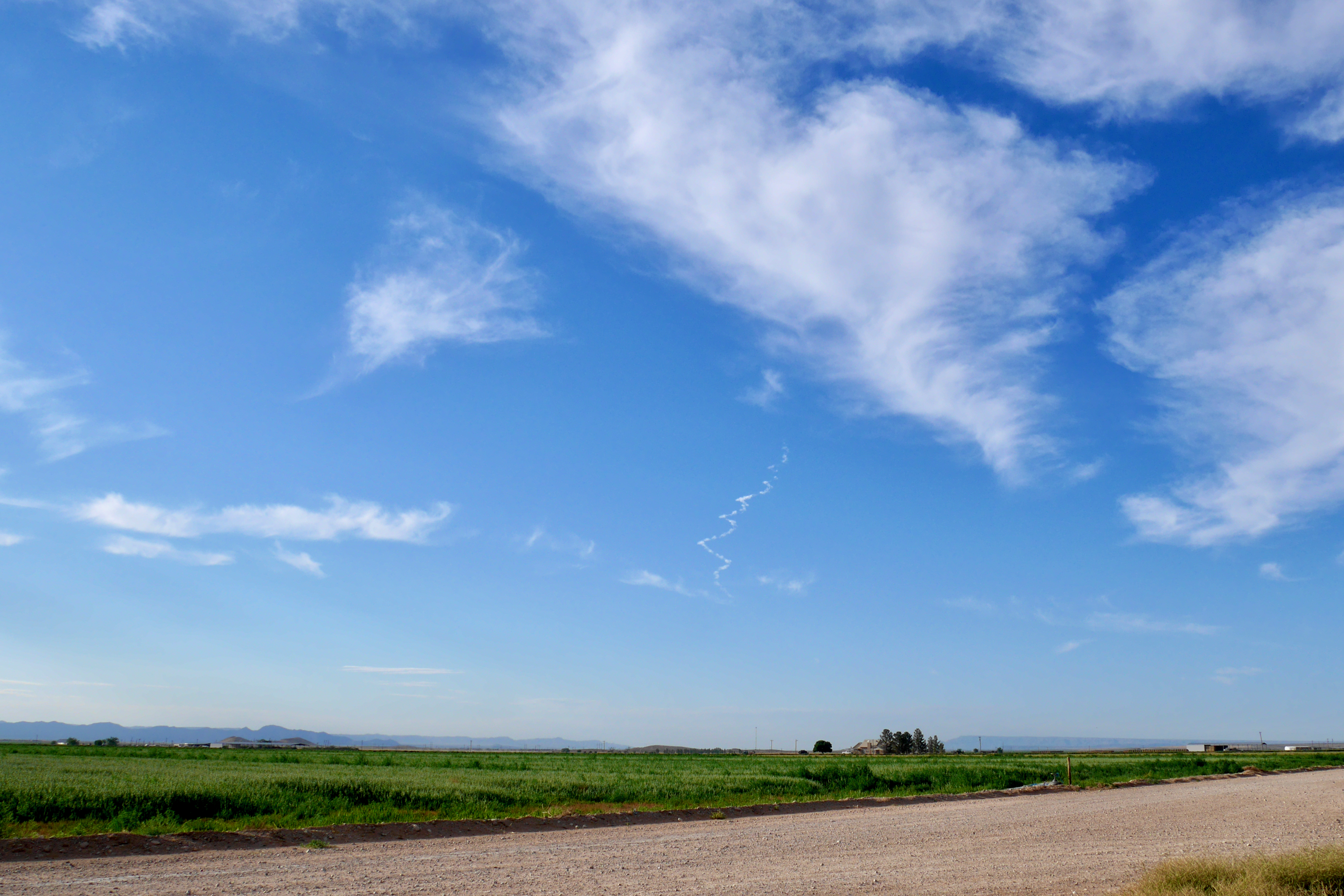 We were staying in our favorite spot in Dell City, Texas in June and got lucky: we got to see a Blue Origin launch! We had missed seeing Bill Shatner’s flight by a day last fall and were delighted to get to see this one. We were too far away to see the engines, rocket, or parachutes, but that’s not an airplane contrail!