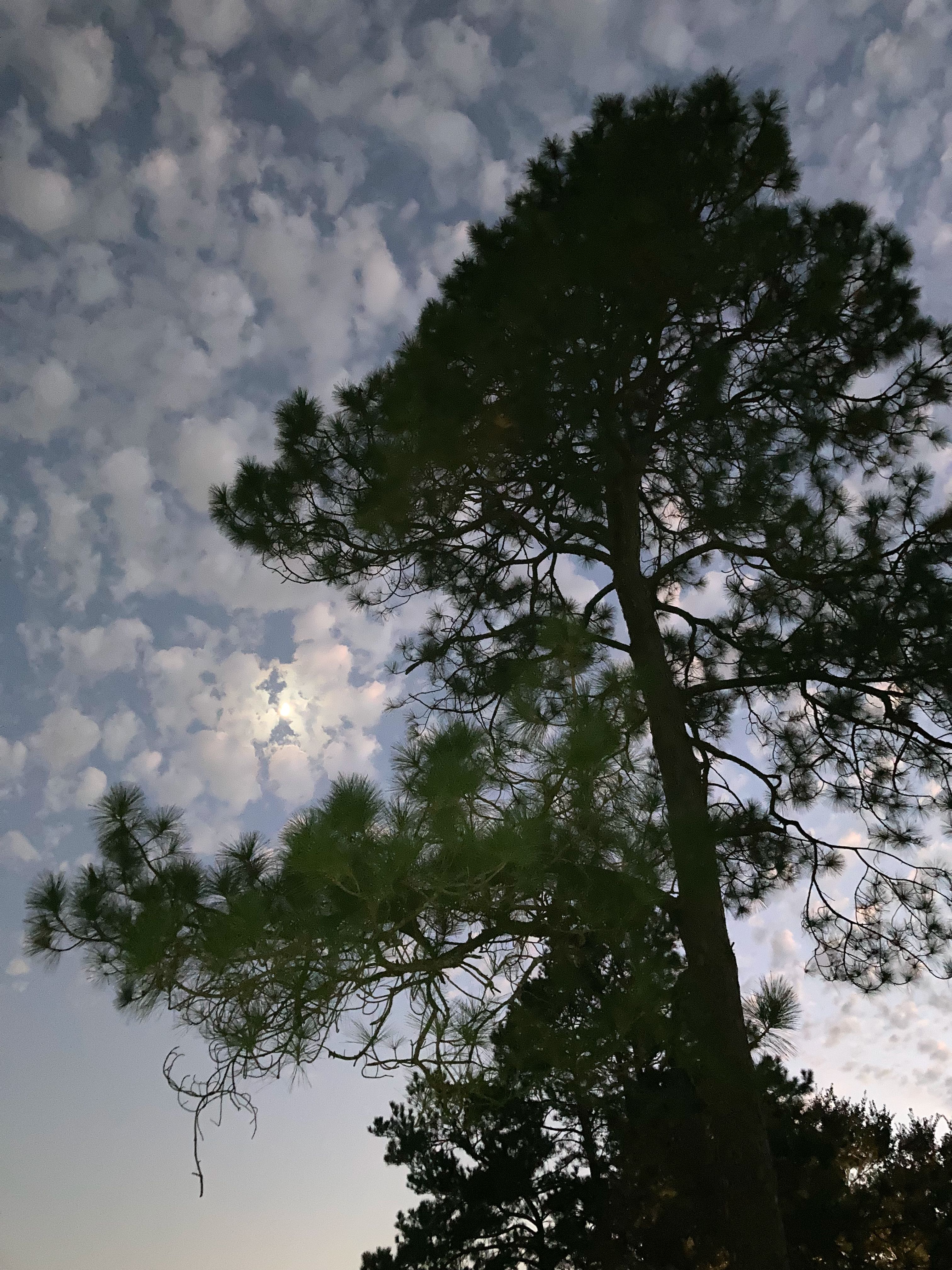 The clouds did not cooperate with my plans to get out my telescope tonight. However, my tree looks like a giant trying to eat the Moon. Happy Halloween!