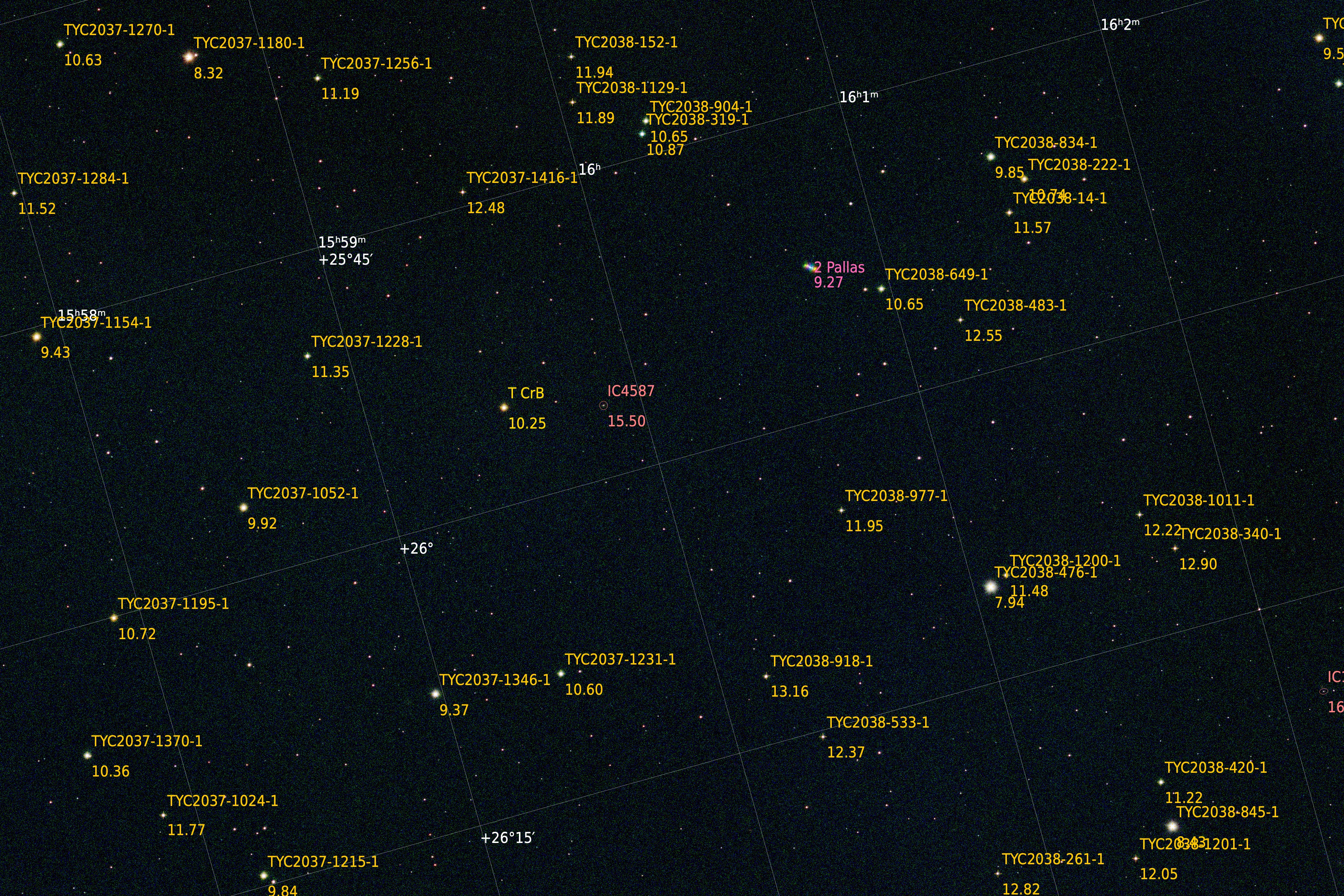 T Coronae Borealis Pre-Nova and photobomber 2 Pallas