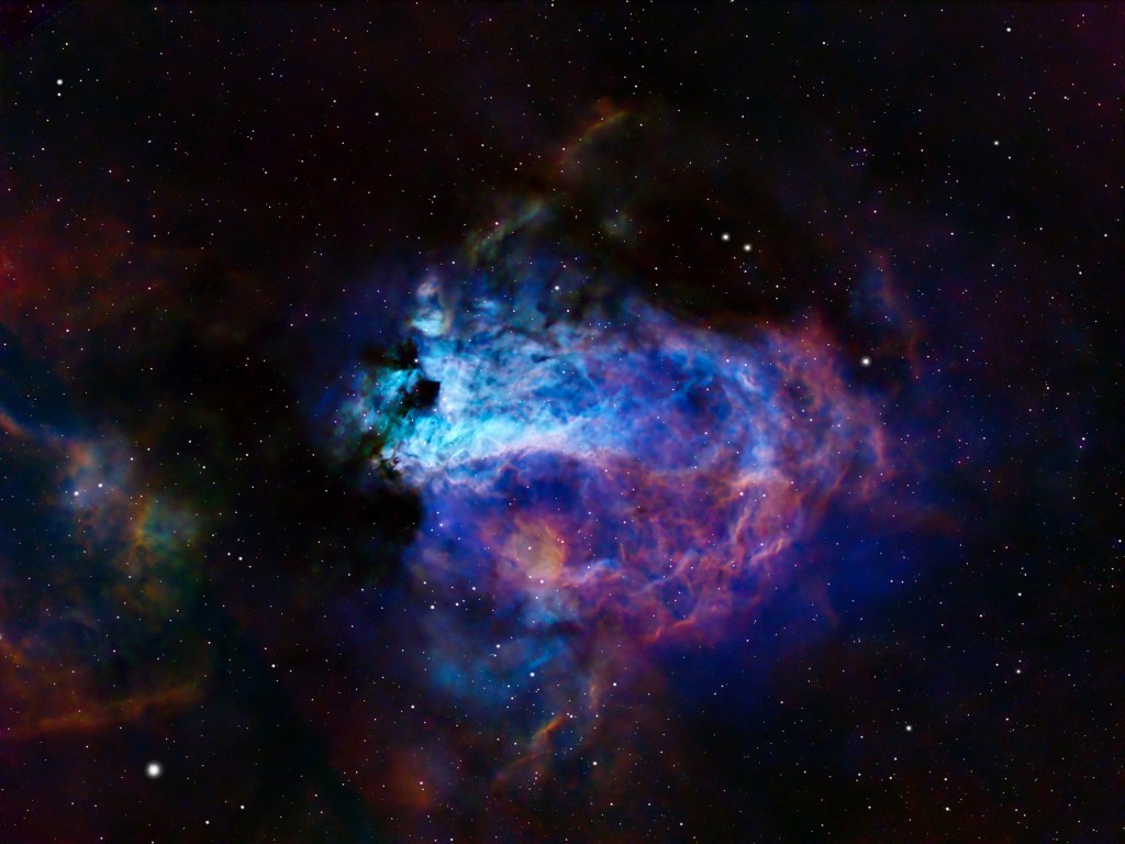 I have learned a lot about narrowband processing while working on this image, and I’ve gotten a lot of useful pointers from the folks at the astrobin forums.