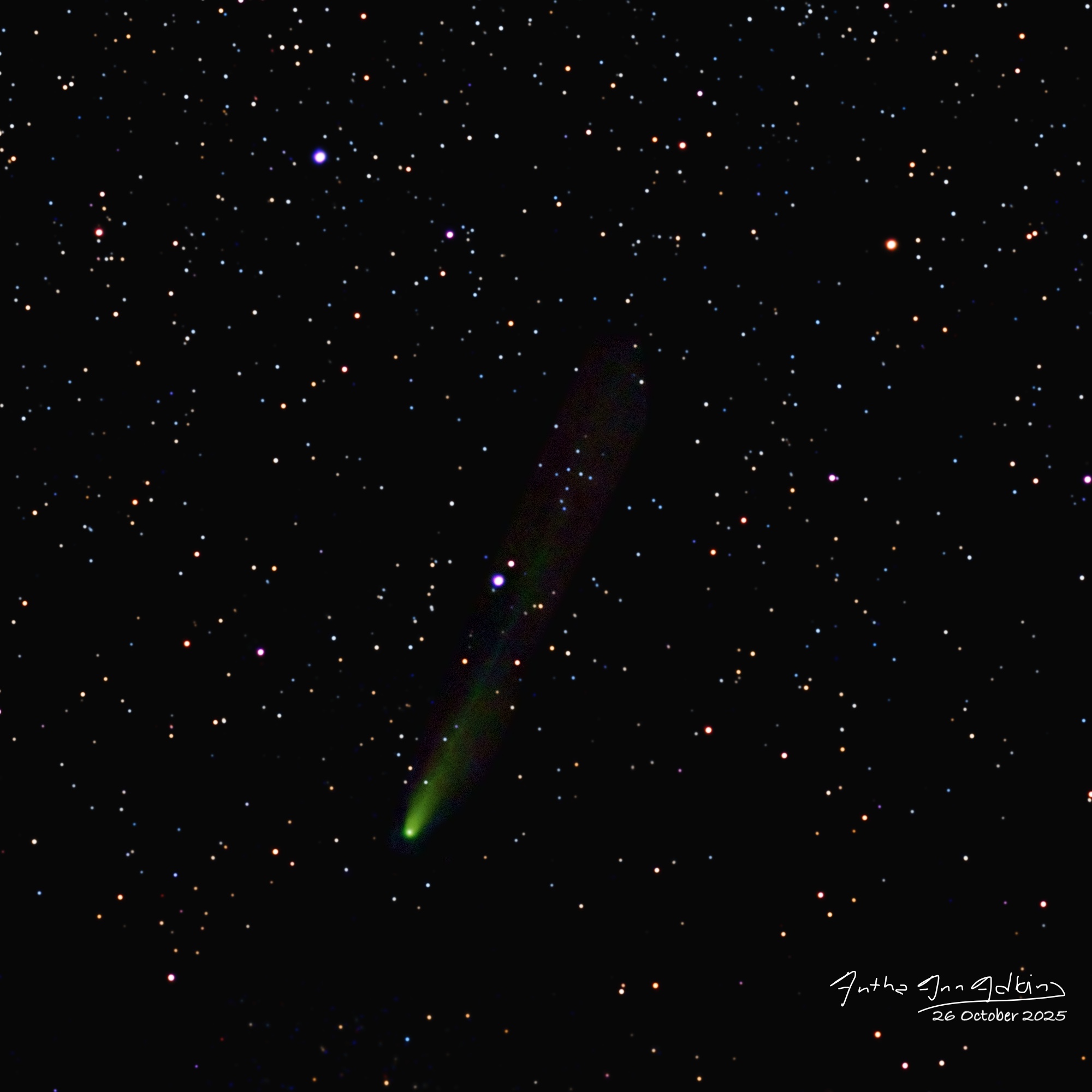 I finally had some time over my Christmas break to process (some of) my comet data, including the wide field images I took on Sunday, October 26, 2025 from the darker (Bortle 4) skies of Sargent, Texas.