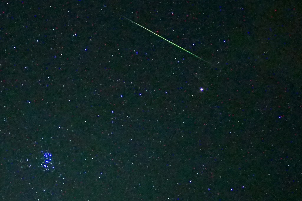 The picture above is my favorite, with the green meteor contrasting with the blue Pleiades.
