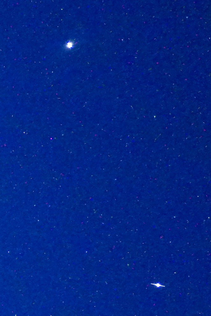 In this last shot, there was a bright flash. Since the shots before and after also show a very dim track, I concluded this was a satellite flare and not a meteor. It looks cool, though.